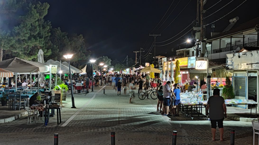 В градчето ще намерите приятни местенца, в които да вечеряте, да пиете студено фрапе или да се забавлявате. От терасите на крайбрежните таверни можете да се наслаждавате на залива, докато чакате сервитьора да ви донесе огромните порции калмари и октоподи.